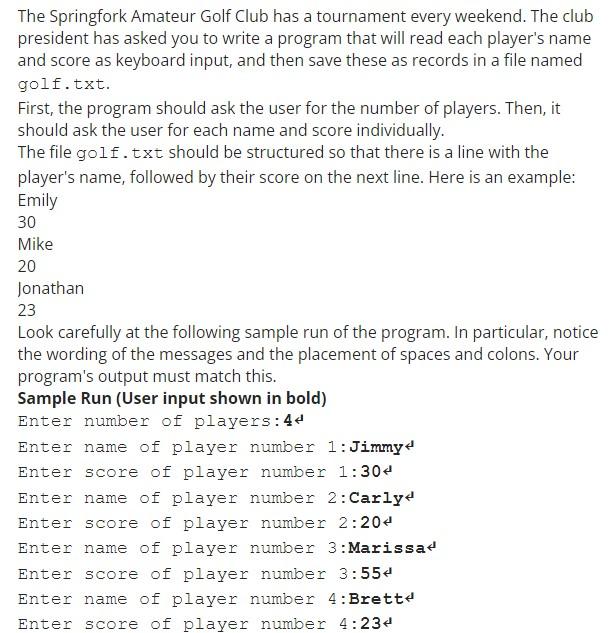 Solved Python Write A Python Application For A Golf Club To Chegg Com