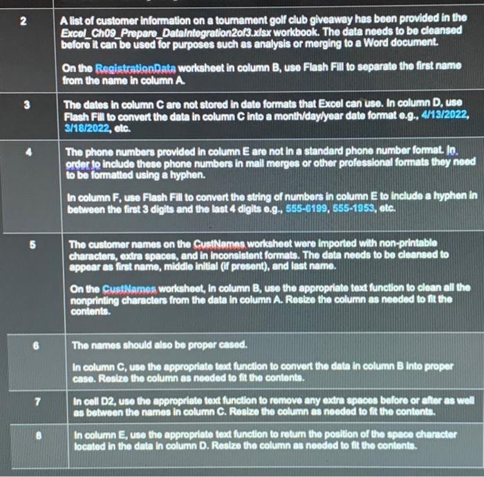 2 A List Of Customer Information On A Tournament Golf Chegg Com
